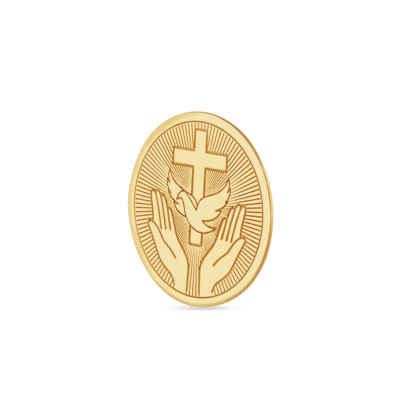 Medalja (zlatnik) dizajniran je kao dragocjena uspomena za posebne životne prigode. Sam zlatnik je ovalnog oblika s duboko ugraviranim religioznim motivom. Proizvod dolazi u elegantnom pakiranju kao savršen dar za vjerske sakramente.Proizvod dolazi bez gravure.Ukoliko želite gravuru upišite u predviđeno polje.